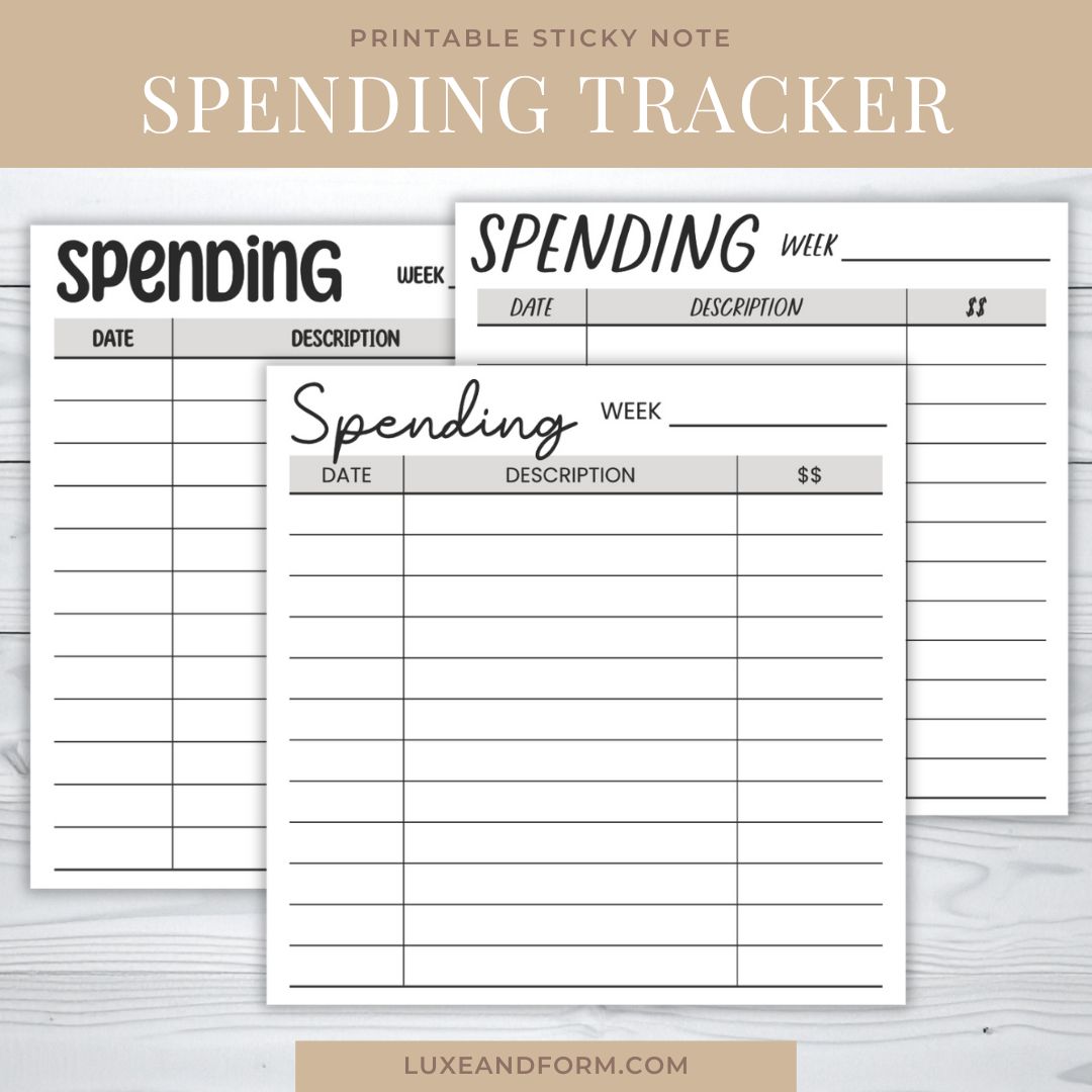 Weekly Spending Tracker Printable Sticky Note (#007)