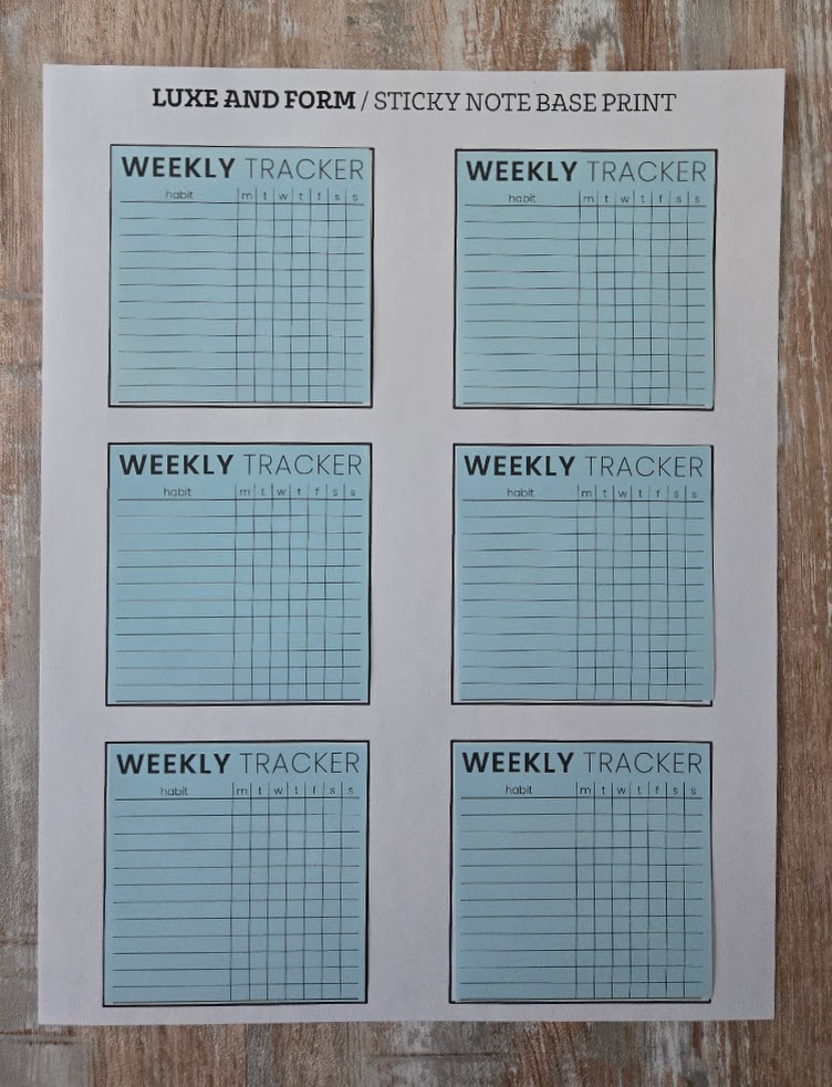 So, you’ve just bought your first Luxe and Form Sticky Note printable and need a bit of a walkthrough on how to print them out onto sticky notes? You came to the right place! Here’s a step-by-step guide using the Weekly Tracker Sticky Note as an example.